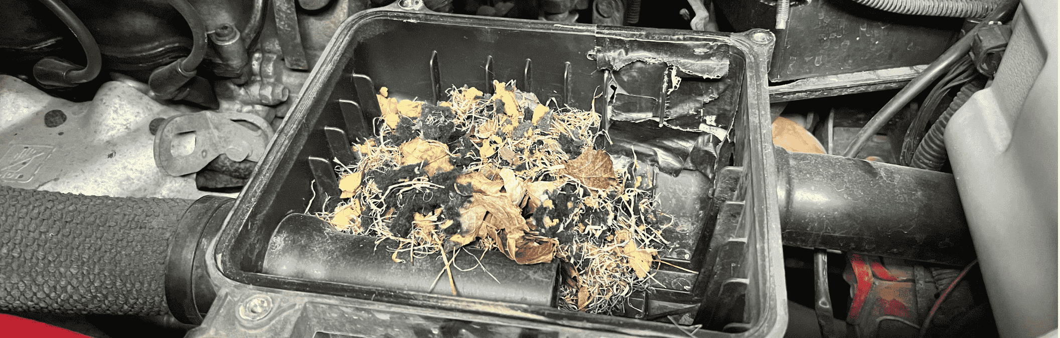 POZOR: vzduchový filtr netrpí jen prachem. Pokud auto přes zimu delší dobu stálo, může se stát, že si ve filtru udělají hnízdo myši. Vypadá to neuvěřitelně, ale potkáváme to pravidelně. Pokud po startu cítíte neobvyklý zápach nebo motor neběží hladce,